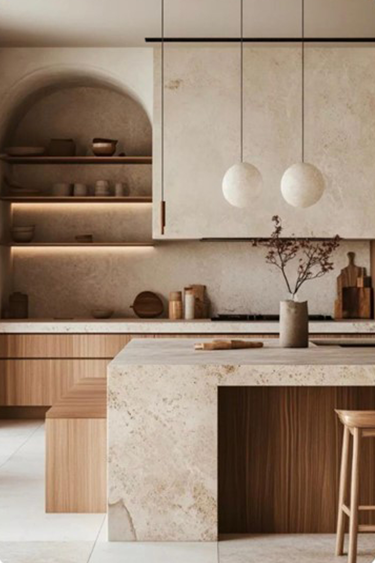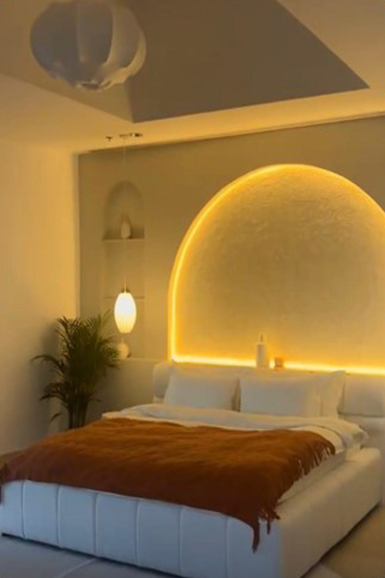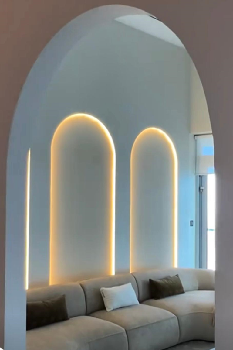 - Stylish Living Room: A warm and inviting layout with elegant textures, statement lighting, and contemporary furniture.